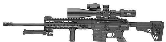 光学瞄具的选择上,可以搭配著名的视得乐(Steiner)光学瞄具,尤其是M5Xi5-25×56MTCLTLPF-TreMoR3瞄准镜(下图),它可以为狙击手提供范围更大的仰角,其镜面透光率能够达到94%以上;另外还有着极强的防水、防雾和防震功能。或者还可以搭配倾斜布置的Aimpoint微型红点瞄准镜。