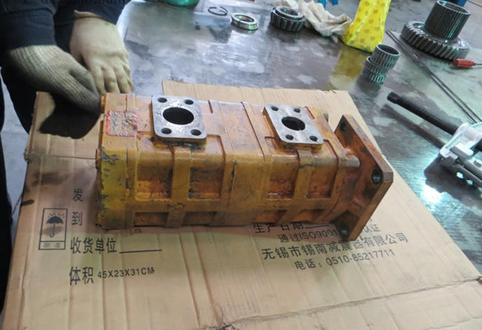 液压泵是将机械能转换为液体压力能,我们一般见到的(挖掘机、装载机用)有齿轮泵和柱塞泵。